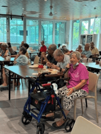 Many residents had not enjoyed fresh prata for a long time, so it wasn’t a surprise that they were eager to dig in. Some could not wait for SJH’s staff and volunteers to take their orders and deliver the pratas, that they ordered the pratas themselves to get their food faster. Quite a few even went back for second and third servings. One resident skipped lunch to reserve their stomach for additional prata, while several wanted to “Da bao” (take away) extra pratas to their rooms after the party. However, they were not allowed to overeat for health and safety reasons. The residents had to eat their extra pratas on the spot.
